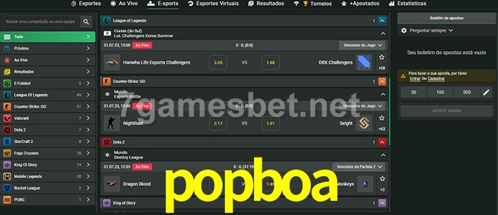 A aposta popboa oferece aos jogadores a experiência mais conveniente de apostas em eSports!